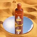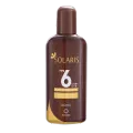 Óleo Bronzeador Solaris FPS 6, 150 ml. Textura leve que desliza pela pele, proporcionando bronzeado dourado e hidratação contínua. Fórmula com óleo de cenoura e óleo de girassol nutre a pele enquanto realça o tom natural. FPS 6 oferece proteção básica UVA/UVB. Perfeito para uso diário, na praia ou na piscina, com efeito suave, luminoso e duradouro.