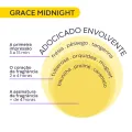 Conheça o Perfume Grace Midnight, 100ml. Fragrância elegante para a noite, com notas quentes de âmbar, baunilha e madeiras que proporcionam sofisticação e sillage marcante. Frasco preto com acabamento cristal reflete luxo e modernidade. Oferece longa duração e pulverização suave, ideal para ocasiões especiais, jantares e encontros noturnos. Excelente presente para quem busca refinamento.